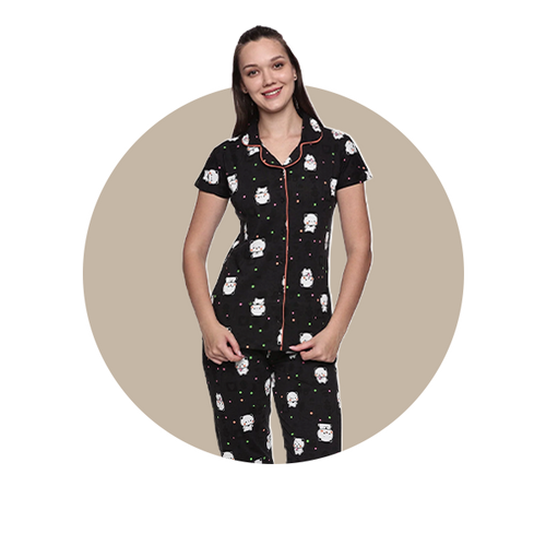Cotton Lycra Short Sleeve Printed T-shirt and Pant Set - 6405 A